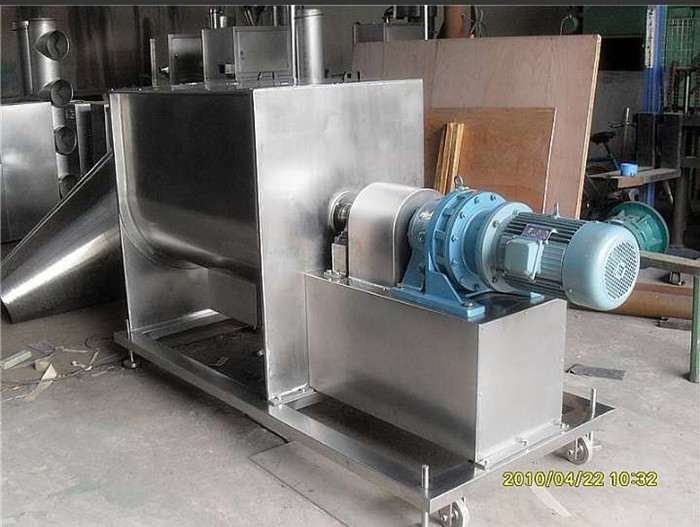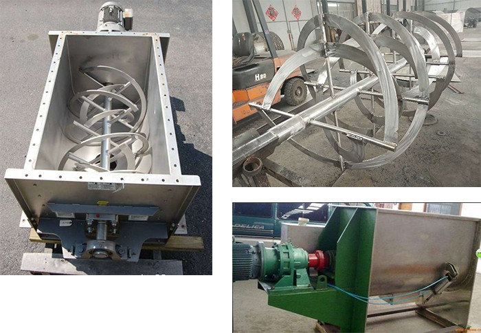 臥式混料機由U形容器、螺帶攪拌葉片和傳動部件組成;螺帶狀葉片一般做成雙層或三層,外層螺旋將物料從兩側向中間匯集,內層螺旋將物料從中間向兩側輸送,形成對流混合。 螺帶混合機對于粘性或有凝聚性的粉粒體的混合以及粉粒體中添加液體及糊狀物料的混合有良好的效果,筒蓋可做成全開式門,以便于對設備進行清洗更換產(chǎn)品。